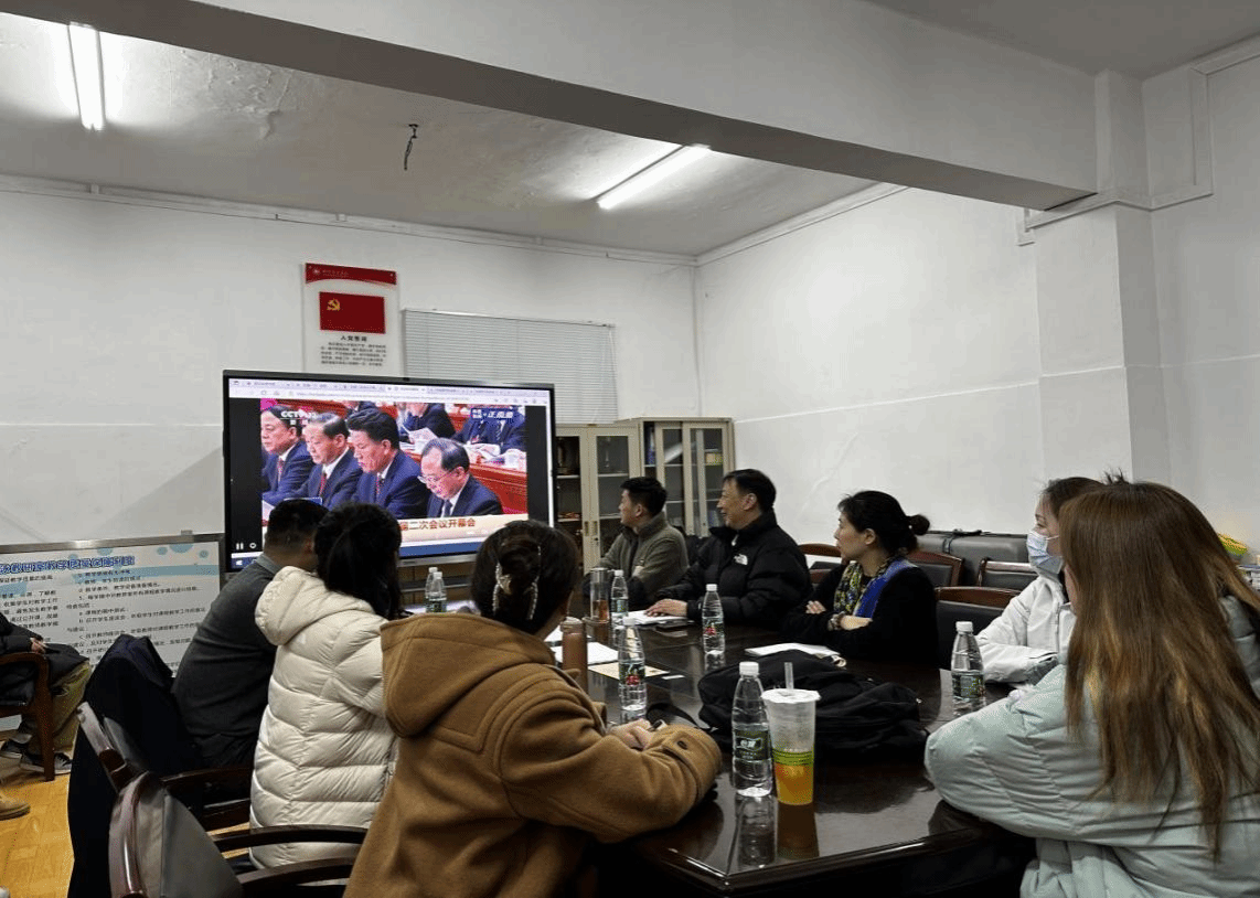 学院领导班子、辅导员、学生代表共同观看全国两会开幕会电视直播