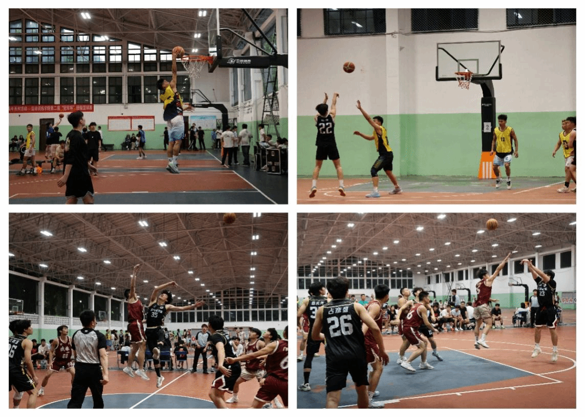 比赛中,每位运动员都拼尽全力,在场上奔跑、争抢、碰撞。汗水从他们的额头滴落,湿透了球衣,但他们毫不退缩,依然全力以赴。队员们用一次次精彩的投篮与抢断将比赛推入高潮,赢得场下师生们的阵阵喝彩与掌声。