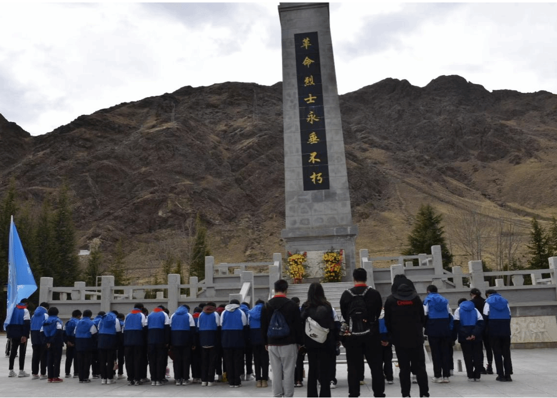 步入陵园后,映入眼帘的是印有“革命烈士永垂不朽”的纪念碑。在革命烈士墓前,支教队员组织孩子们庄严肃立,对英勇投身解放事业的烈士们表达深切哀思。