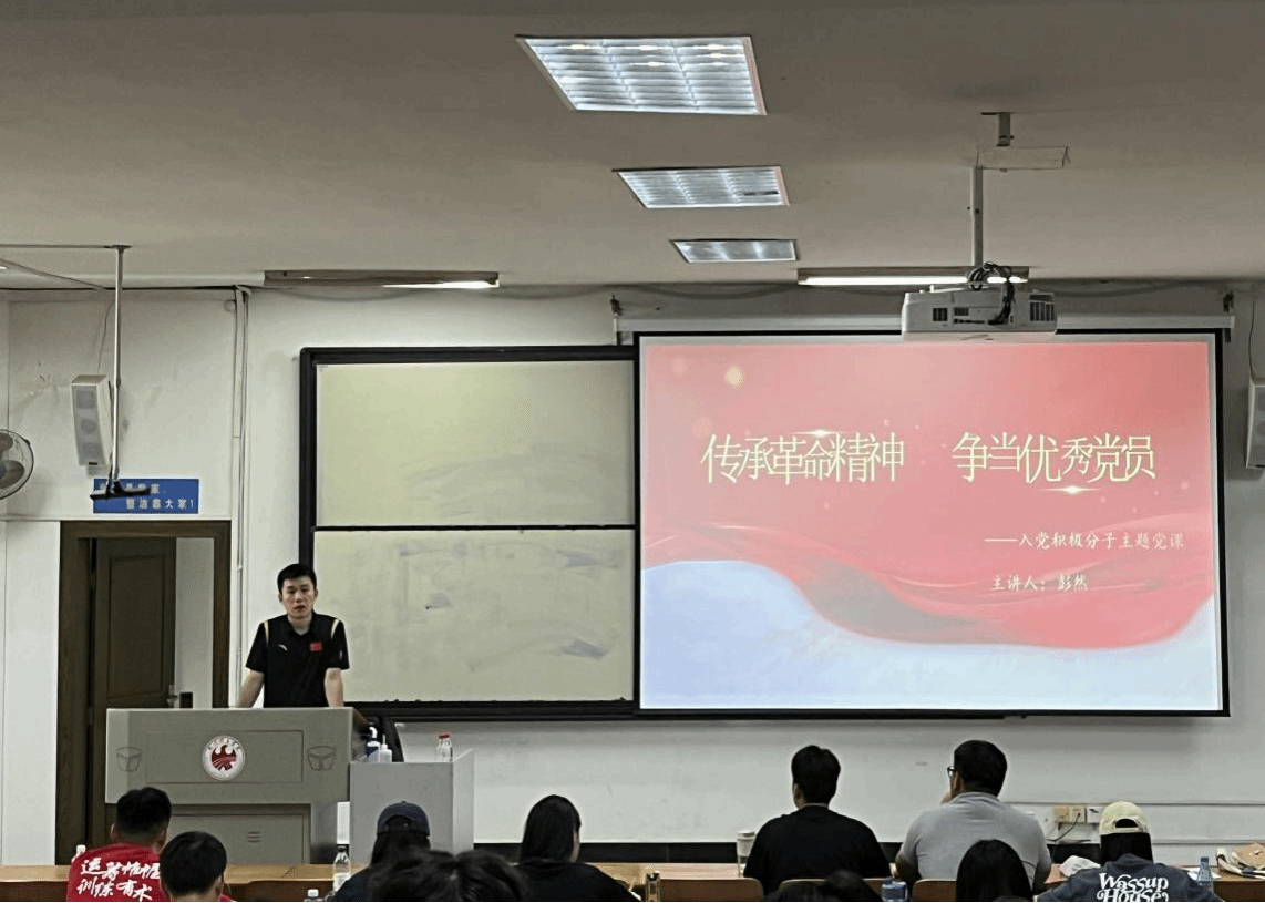 彭然老师以《传承革命精神,争当优秀党员》为题为学员们讲授了一堂深刻、生动的专题党课。他先回顾了中国共产党的发展历程,强调党百余年来始终与祖国和民族同呼吸、共命运。他鼓励入党积极分子坚定理想信念,筑牢信仰之基,端正入党动机,做到心中有党;潜心读书学习,做到心中有梦想;练就过硬本领,做到吃苦肯担当。