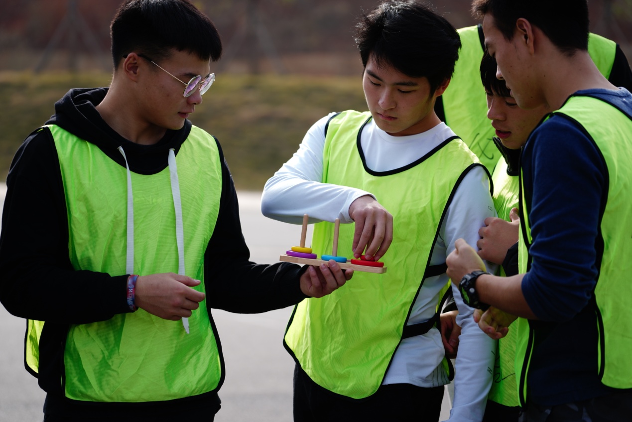 到达活动地点,教官用一系列的暖场活动调动大家的积极性。