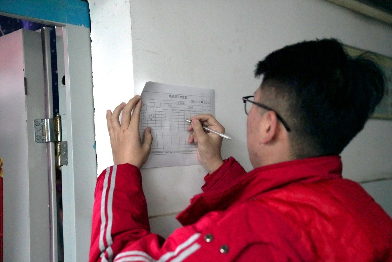 学生干部们对于各寝室的卫生和违规电器进行登记