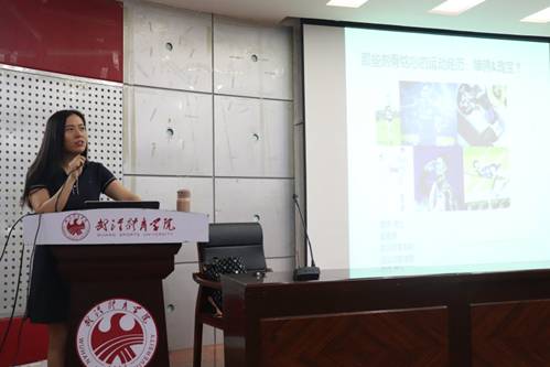 廖婷副教授是华中师范大学博士后,美国德州大学泰勒分校访问学者,武汉体育学院硕士研究生导师。在讲座开始前以轻松愉悦的方式与同学们展开互动,2017级学生朱红光向大家分享了自己的运动经历,引起了在座同学们的共鸣。