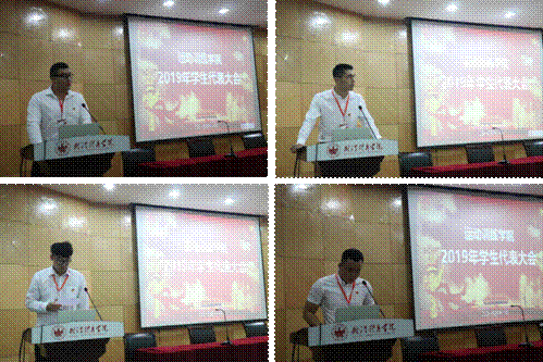 校团委书记张广弟代表学校向大会的召开表示祝贺,对近一年来运动训练学院学生会的工作给予了充分的肯定,并对各学生代表提出三点要求:第一,要坚定政治方向,志存高远。第二,要紧跟时代步伐,改革创新。第三,要心系广大学生,锤炼作风。