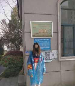 运训2019级一部朱芷萱同学参加疫情防控工作时的照片