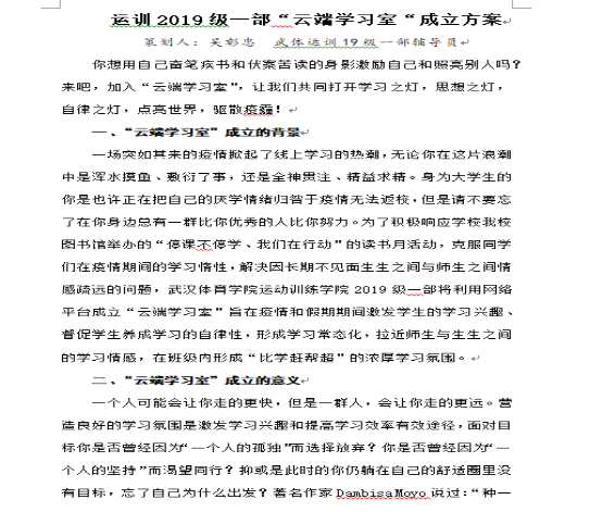 运训2019级一部通过成立方案、召开启动仪式号召大家积极参与