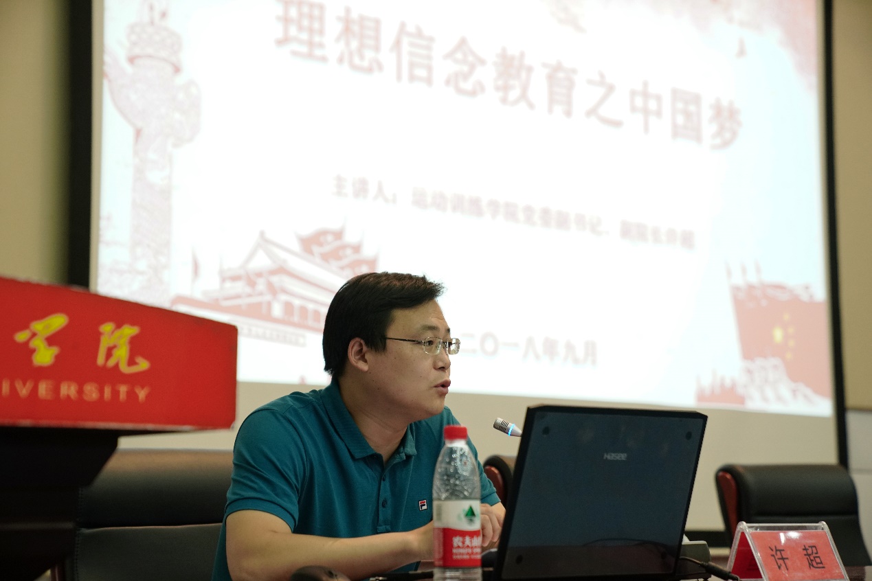 2018年9月27日星期四下午3点,运动训练学院在东教学楼第3报告厅举行了“理想信念教育之中国梦”知识讲座,由运动训练学院党委副书记、副院长许超作为主讲人。