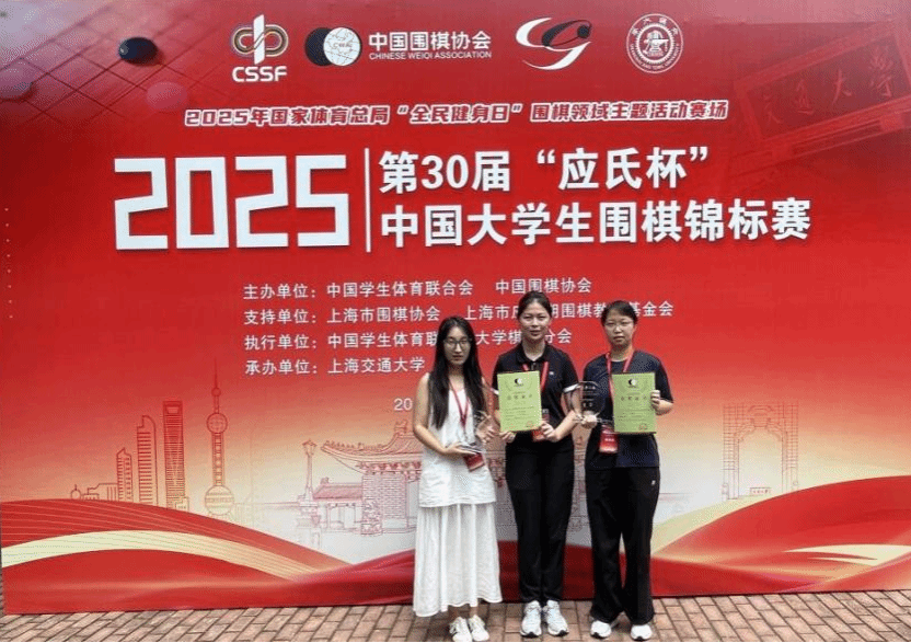 新闻网讯(通讯员胡锦闻)8月9日至12日,由中国学生体育联合会和中国围棋协会主办,第30届“应氏杯”中国大学生围棋锦标赛在上海交通大学隆重举行。来自全国46所高校的172名优秀青年棋手齐聚一堂,展开了一场场激烈的智慧对决。武汉体育学院围棋队在本次比赛中表现卓越,成功斩获女子团体冠军、业余组女子个人冠军和季军的优异成绩。