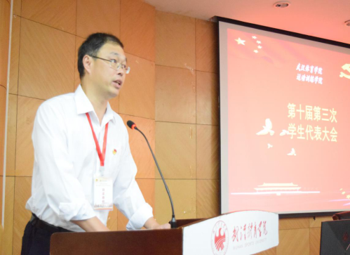 运动训练学院党委书记徐法为大会致欢迎词,他对到场的老师及学生代表表示热烈欢迎,并预祝运动训练学院2020年学生代表大会圆满成功。他希望新一届主席团能继承优良传统,发挥好桥梁和纽带作用,争取为我院学生成长进步贡献更大力量。